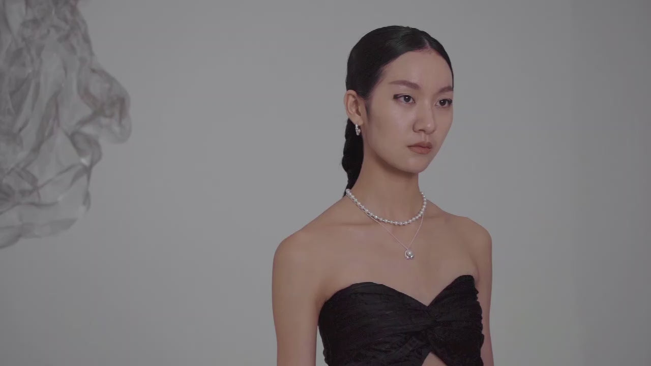 The exclusive pearl earrings are characterized by its minimalist wave pattern, commands attention. It effectively showcasing the ingenious blending of traditional aesthetics and contemporary style that typified the designer's signature approach.
